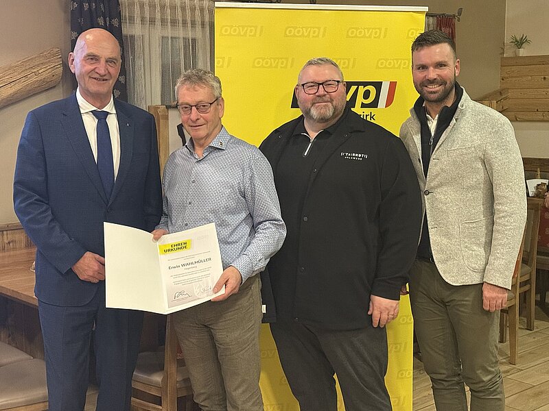 LR Christian Dörfel durfte gemeinsam mit den Abgeordneten der OÖVP im Bezirk Freistadt im Namen von Landeshauptmann Mag. Thomas Stelzer und Landesparteisekretär Mag. Florian Hiegelsberger verdiente Funktionäre ehren: