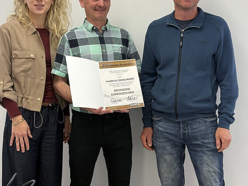 Besonders freute sie sich, den langjährigen Obmann der Betriebsgruppe, Markus Zeinlinger, mit dem Ehrenzeichen in Bronze des ÖAAB für seine mehr als 8 jährige Funktion an der Spitze der Betriebsgruppe auszeichnen zu dürfen.